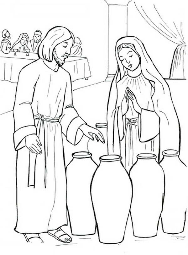 Kolorowanka Cud w Kanie Galiliejskiej do wydrukowania